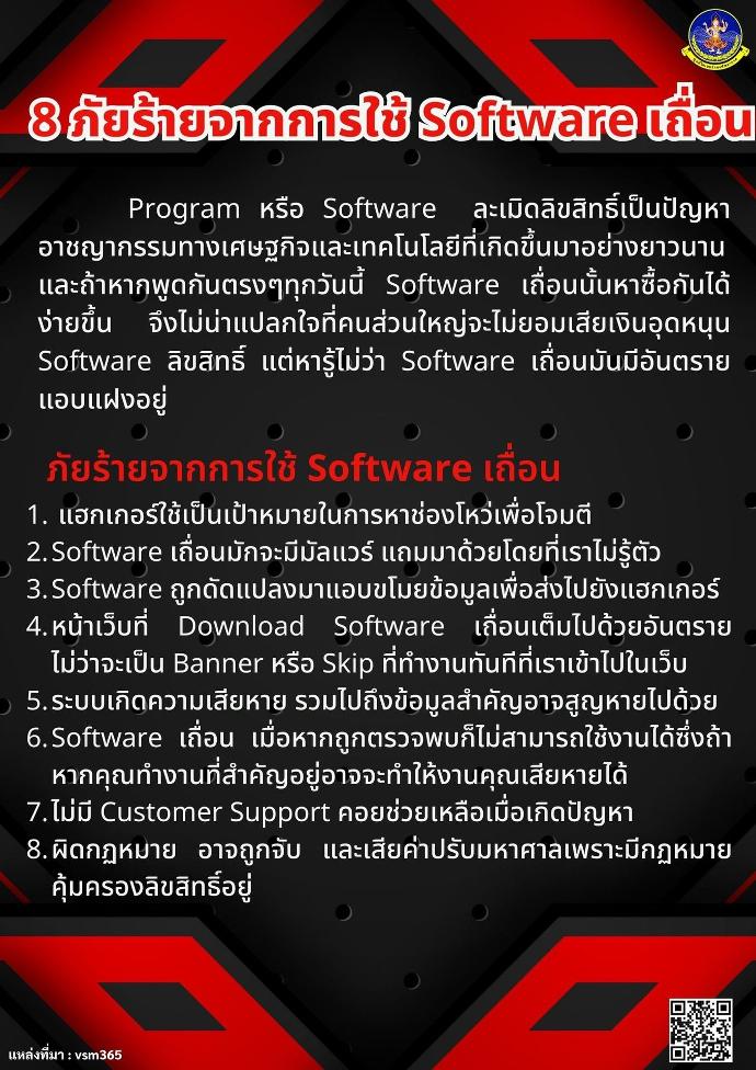 Program หรือ Software ละเมิดลิขสิทธิ์เป็นปัญหาอาชญากรรมทางเศษฐกิจและเทคโนโลยีที่เกิดขึ้นมาอย่างยาวนานและถ้าหากพูดกันตรงๆทุกวันนี้ Software เถื่อนนั้นหาซื้อกันได้ง่ายขึ้น จึงไม่น่าแปลกใจที่คนส่วนใหญ่จะไม่ยอมเสียเงินอุดหนุน Software ลิขสิทธิ์ แต่หารู้ไม่ว่า Software เถื่อนมันมีอันตรายแอบแฝงอยู่