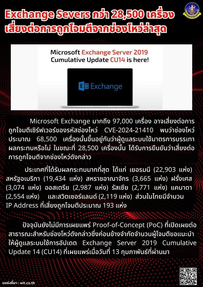 Exchange Severs กว่า 28,500 เครื่อง เสี่ยงต่อการถูกโจมตีจากช่องโหว่ล่าสุด