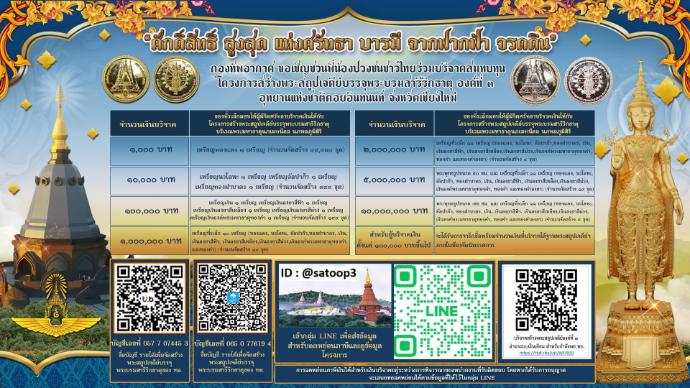 "ศักดิ์สิทธิ์ สูงสุด แห่งศรัทธา บารมีจากฟากฟ้า จรดดิน"ขอเชิญชวนพี่น้องปวงชนชาวไทยร่วมบริจาคสมทบทุนโครงการสร้างพระสถูปเจดีย์บรรจุพระบรมสารีริกธาตุ องค์ที่ 3 อุทยานแห่งชาติดอยอินทนนท์ จังหวัดเชียงใหม่