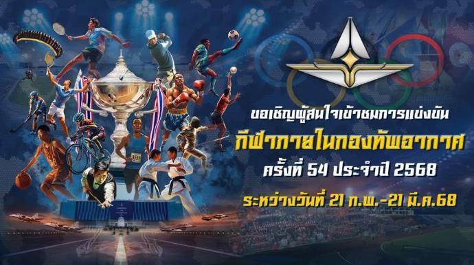 ขอเชิญชม การแข่งขันกีฬาภายในกองทัพอากาศ ครั้งที่ 54 ประจำปี 2568
