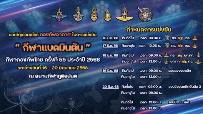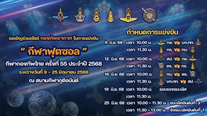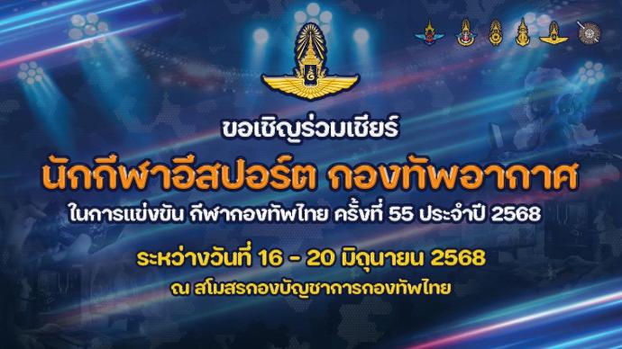 ขอเชิญร่วมชม ร่วมเชียร์ กองทัพอากาศ ในการแข่งขัน “กีฬากองทัพไทย ครั้งที่ 55 ประจำปี 2568”