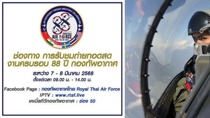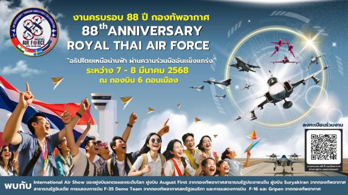 ขอเชิญร่วมเป็นส่วนหนึ่ง และภาคภูมิใจ ไปกับกองทัพอากาศกับงาน “ครบรอบ 88 ปี กองทัพอากาศ”“อธิปไตยเหนือน่านฟ้า ผ่านความร่วมมืออันแข็งแกร่ง”