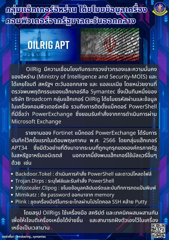Symantec ซึ่งเป็นทีมหนึ่งของบริษัท Broadcom กลุ่มแฮ็กเกอร์ OilRig