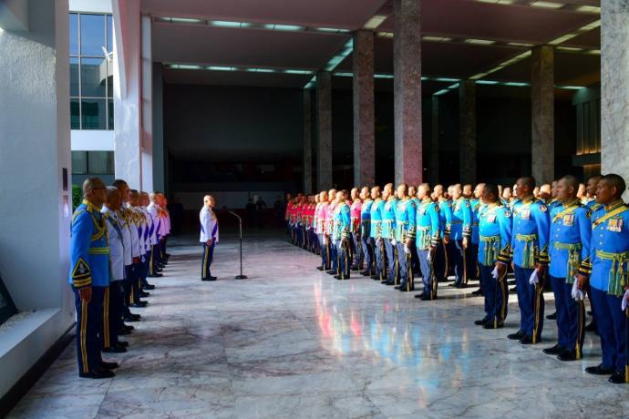 สำหรับการจัดกำลังสวนสนามและถวายสัตย์ปฏิญาณตนของทหารรักษาพระองค์ฯ ในครั้งนี้ ประกอบกำลังพลสวนสนามจาก กรมทหารรักษาวังมหาดเล็กราชวัลลภรักษาพระองค์ กองบัญชาการทหารมหาดเล็กราชวัลลภรักษาพระองค์ หน่วยบัญชาการถวายความปลอดภัยรักษาพระองค์, กรมนักเรียนนายร้อยรักษาพระองค์ โรงเรียนนายร้อยพระจุลจอมเกล้า, กรมนักเรียนนายเรือรักษาพระองค์ โรงเรียนนายเรือ, กรมนักเรียนนายเรืออากาศรักษาพระองค์ โรงเรียนนายเรืออากาศนวมินทกษัตริยาธิราช, กองพันทหารราบที่ 1 กรมทหารราบที่ 31 รักษาพระองค์ , กองพันทหารอากาศโยธิน 3 กรมทหารอากาศโยธิน รักษาพระองค์ หน่วยบัญชาการอากาศโยธิน , กองพันทหารม้าที่ 25 กรมทหารม้าที่ 4 รักษาพระองค์, กองพันทหารราบที่ 2 กรมทหารราบที่ 21 รักษาพระองค์, กองพันทหารปืนใหญ่ที่ 102 กรมทหารปืนใหญ่ที่ 2 รักษาพระองค์, กองพันทหารราบที่ 1 รักษาพระองค์ กรมทหารราบที่ 1 กองพลนาวิกโยธิน หน่วยบัญชาการนาวิกโยธิน, กองพันทหารม้ารักษาพระองค์