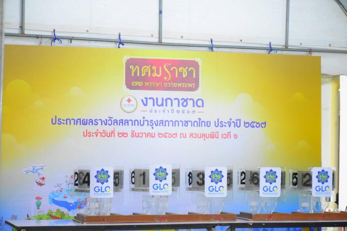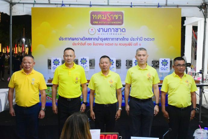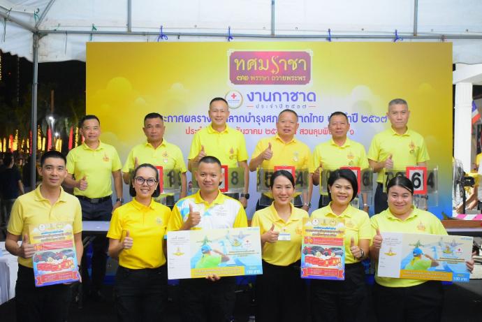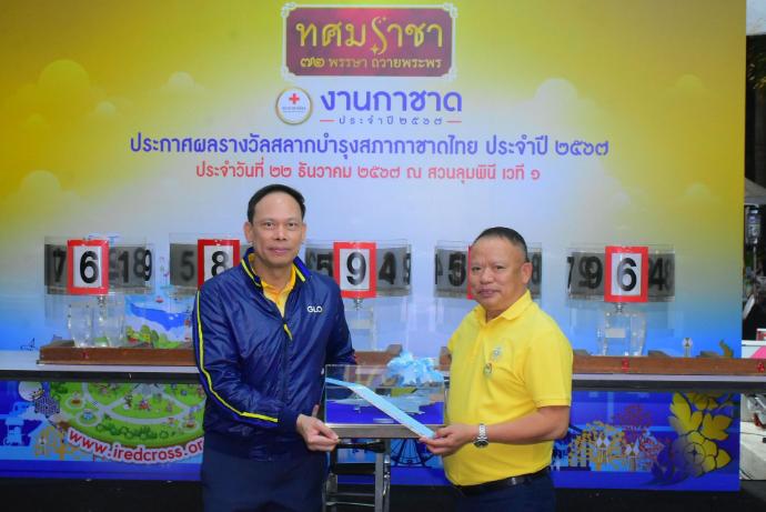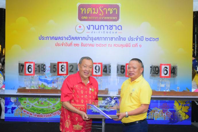 ประกาศผลการออกรางวัลสลากบำรุงสภากาชาดไทย กองทัพอากาศ ประจำปี 2567 พลอากาศเอก ชัยนาท ผลกิจ รองผู้บัญชาการทหารอากาศ ในฐานะประธานกรรมการจัดงานกาชาดกองทัพอากาศ พร้อมด้วย พลอากาศโท ประภาส สอนใจดี รองเสนาธิการทหารอากาศ ในฐานะรองประธานกรรมการจัดงานกาชาดกองทัพอากาศ และคณะกรรมการ ฯ ร่วมเป็นสักขีพยานในการออกรางวัลสลากบำรุงสภากาชาดไทย กองทัพอากาศ ประจำปี 2567 ณ เวที 1 สวนลุมพินี กรุงเทพมหานคร เมื่อวันอาทิตย์ที่ 22 ธันวาคม 2567 เวลา 21.30 น.