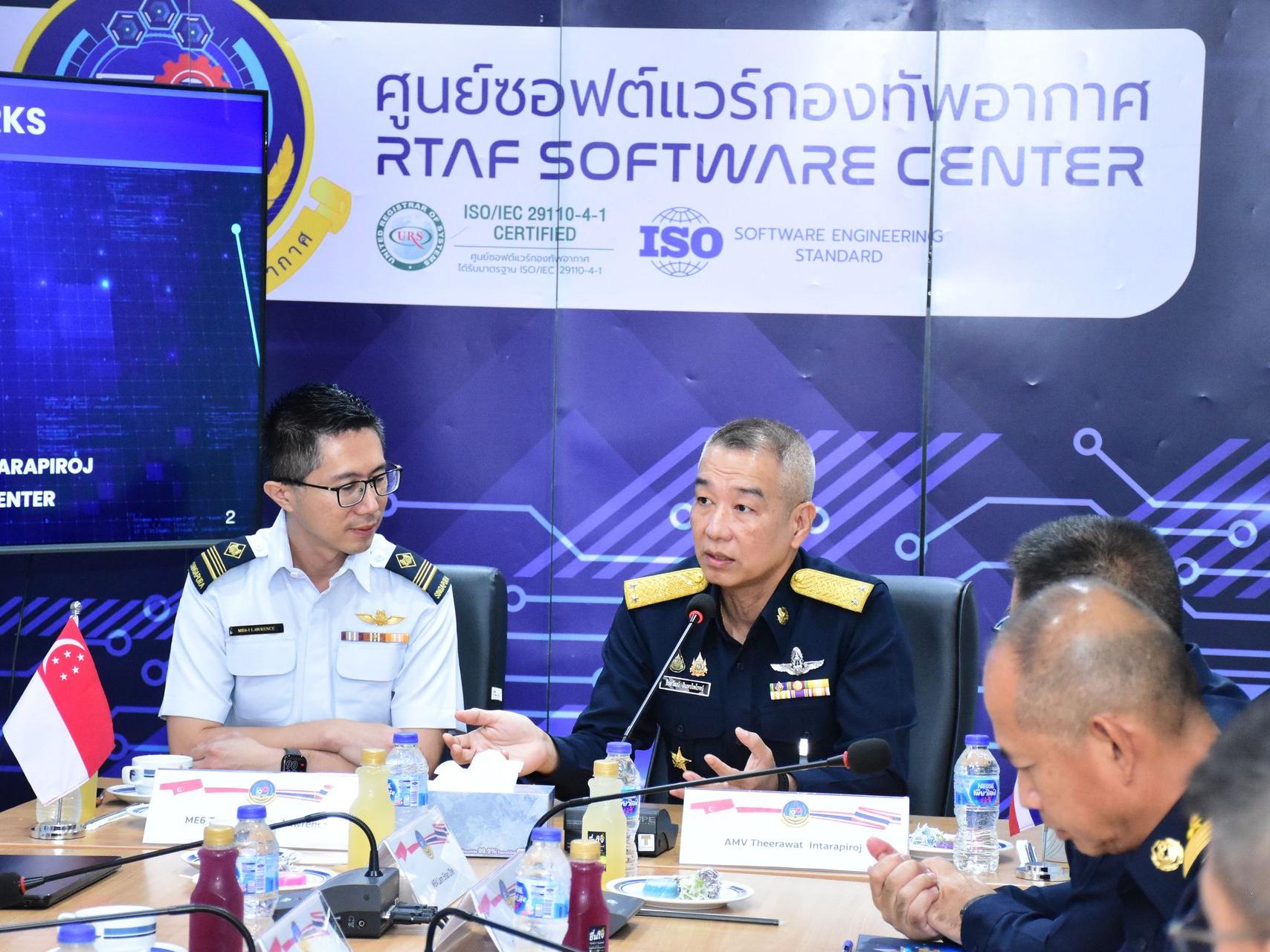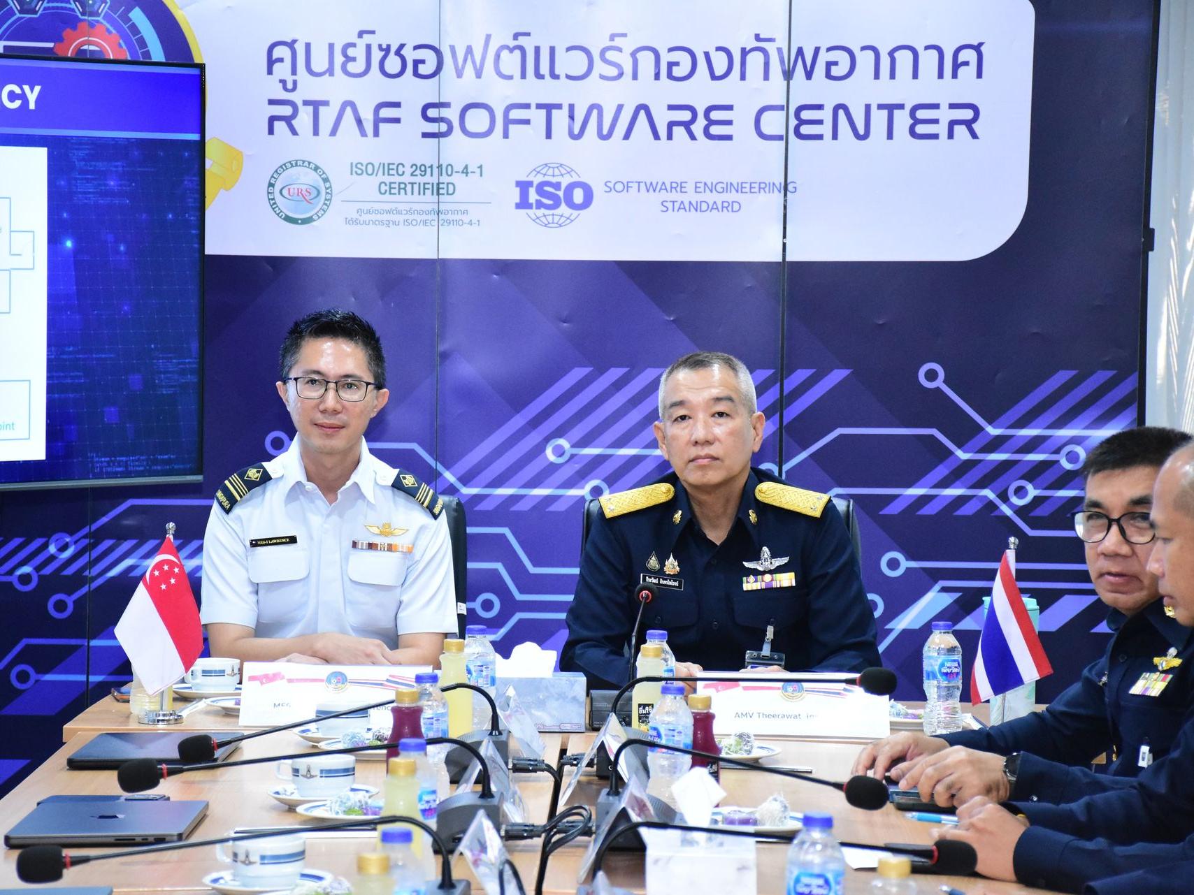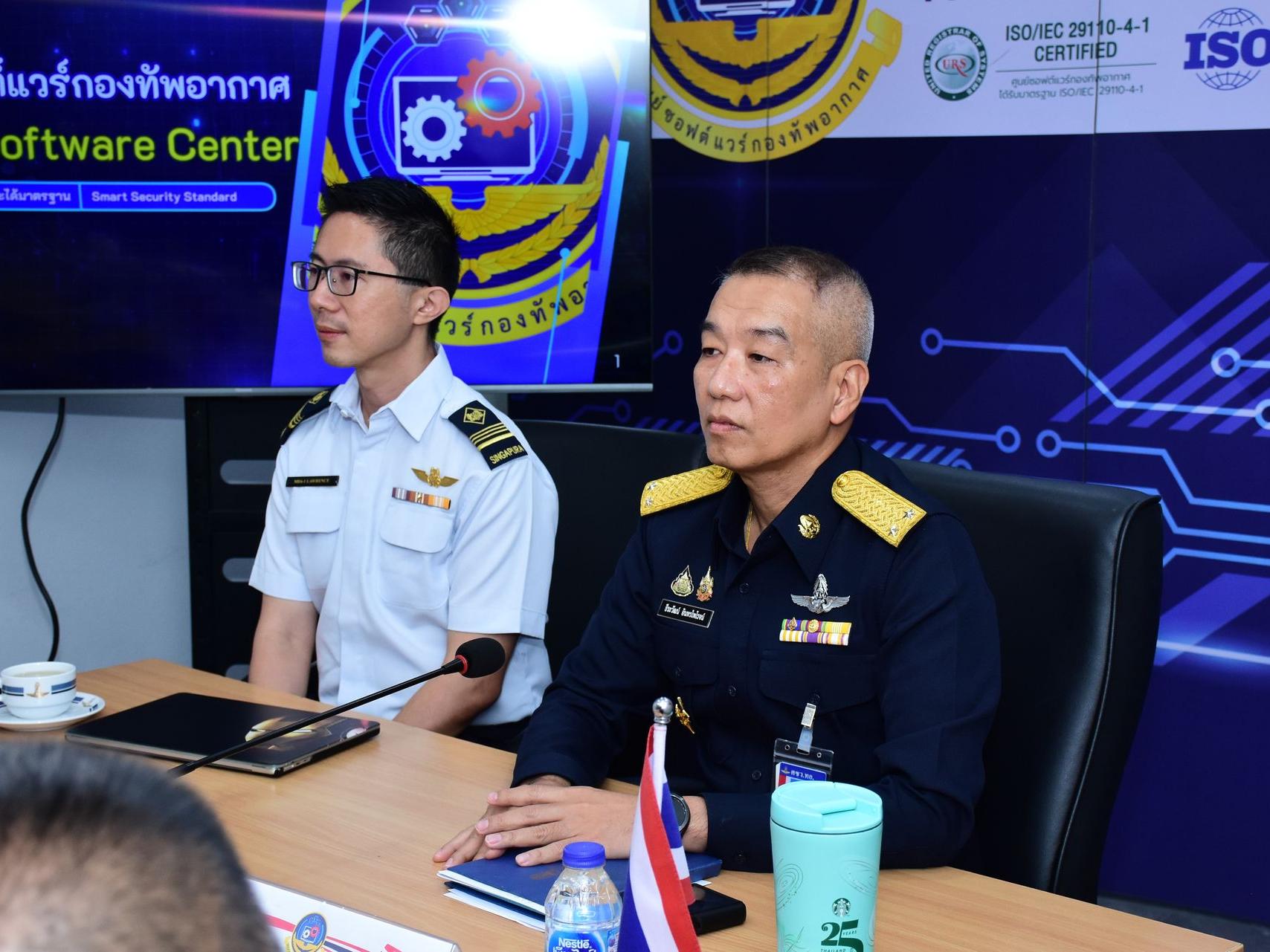 Tan Wei Hong, Lawrence และคณะกองทัพอากาศสิงคโปร์ เดินทางมาตรวจเยี่ยมดูงานศูนย์ซอฟต์แวร์กองทัพอากาศ โดยมี พลอากาศตรี