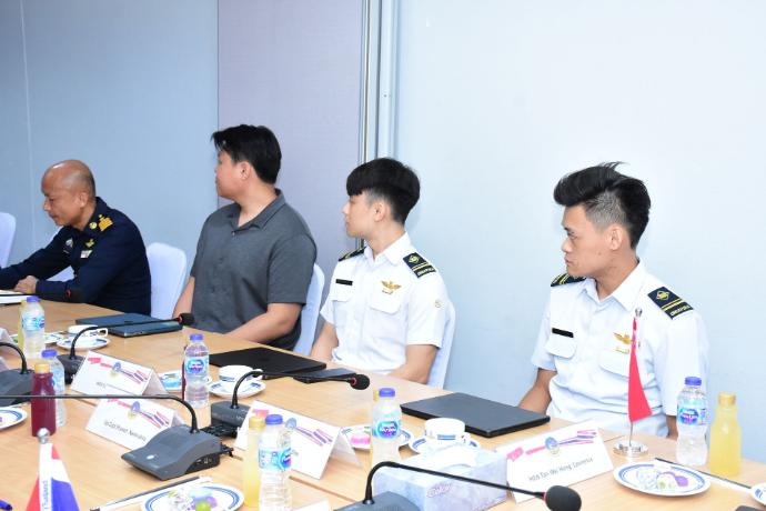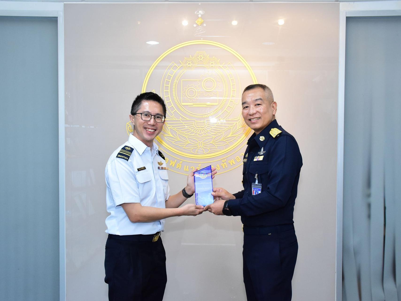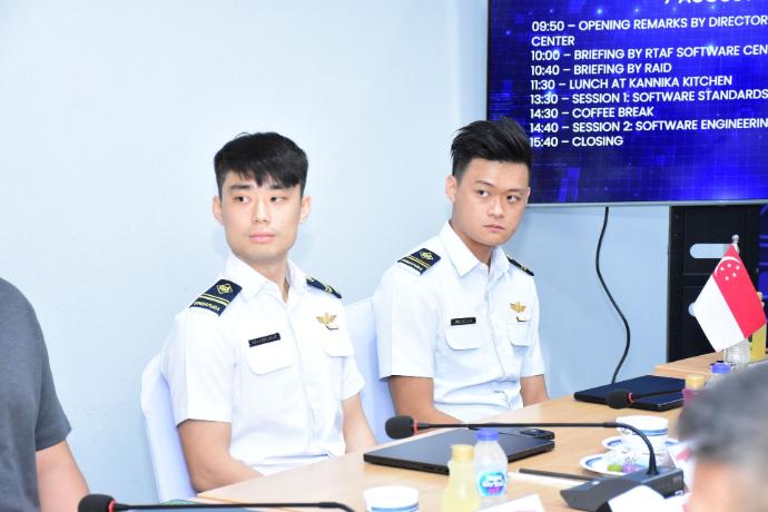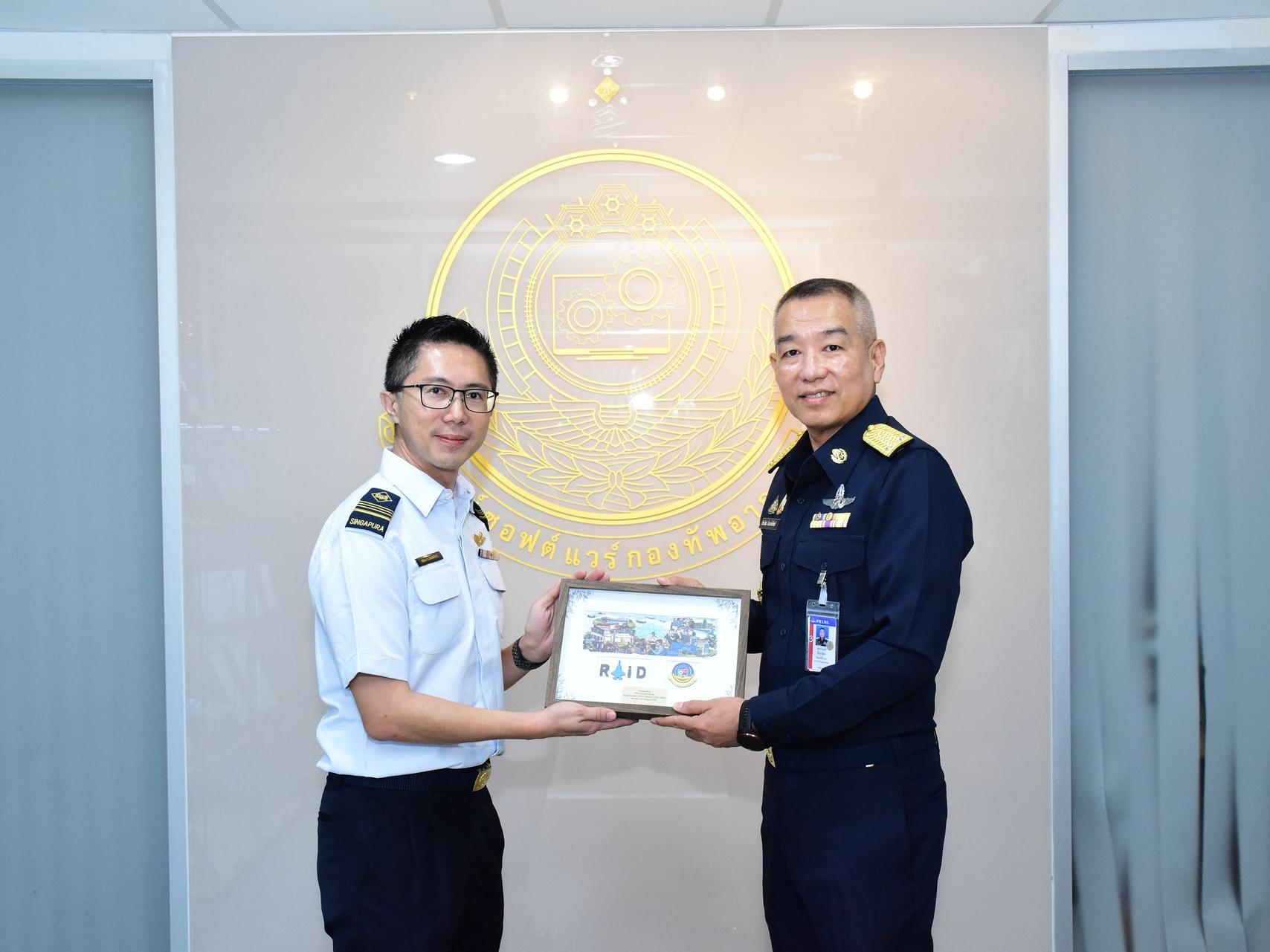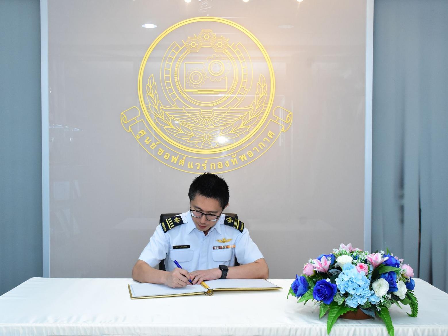 Tan Wei Hong, Lawrence และคณะกองทัพอากาศสิงคโปร์ เดินทางมาตรวจเยี่ยมดูงานศูนย์ซอฟต์แวร์กองทัพอากาศ โดยมี พลอากาศตรี