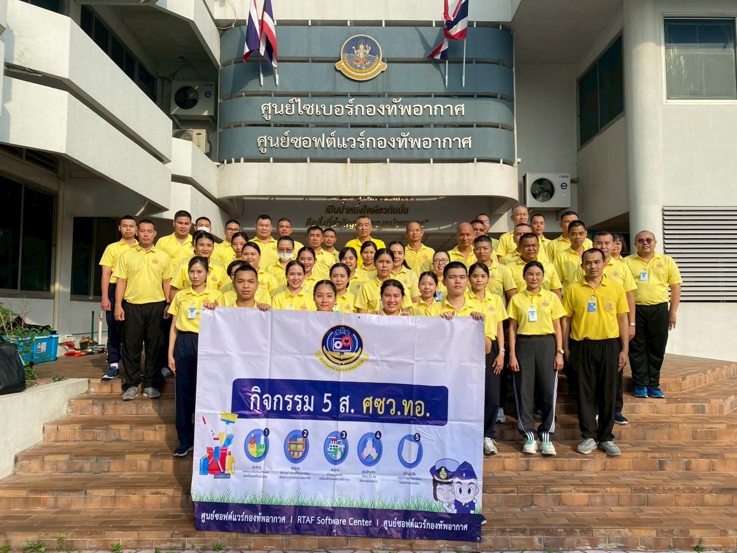 ผอ.ศซว.ทอ. เป็นประธานพิธีเปิดกิจกรรม 5 ส. เพื่อพัฒนาพื้นที่บริเวณรอบอาคารปฏิบัติงานศซว.ทอ.และ ศซบ.ทอ. โดยมีผู้บังคับบัญชา ข้าราชการ และพนักงานราชการร่วมกิจกรรม 5 ส.
