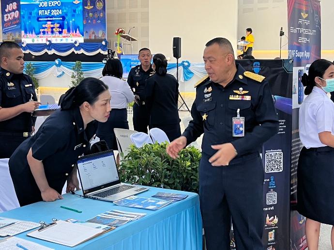 วันที่ 10 กันยายน 2567 พล.อ.ต.สมนึก โพธิ์ศรี ผู้อำนวยการศูนย์ซอฟต์แวร์กองทัพอากาศ นำข้าราชการ ศูนย์ซอฟต์แวร์กองทัพอากาศ ร่วมงานมหกรรมอาชีพและนัดพบแรงงาน “Job Expo RTAF 2024” และศูนย์ซอฟต์แวร์กองทัพอากาศ นำ RTAF Super App ที่ทางศูนย์ซอฟต์แวร์กองทัพอากาศพัฒนาขึ้นเองเข้าร่วมงาน ภายใน App มีช่องทางการขายของและสนับสนุนอาชีพของข้าราชการกองทัพอากาศ ณ อาคารอเนกประสงค์ชาวฟ้า สโมสรทหารอากาศชั้นประทวน