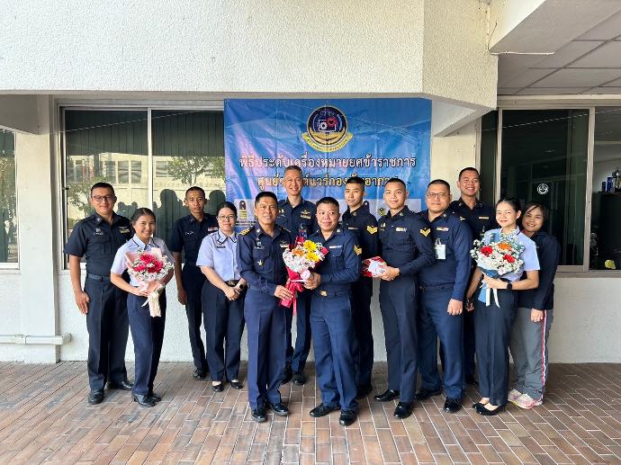 วันพุธที่ 10 มกราคม พ.ศ.2566 1300 น. พล.อ.ต.สมนึก โพธิ์ศรี ผอ.ศซว.ทอ. เป็นประธานพิธีประดับยศ น.ประทวน ศซว.ทอ. จำนวน 10 คน โดยมีผู้บังคับบัญชา ศซว.ทอ.เข้าร่วมพิธี