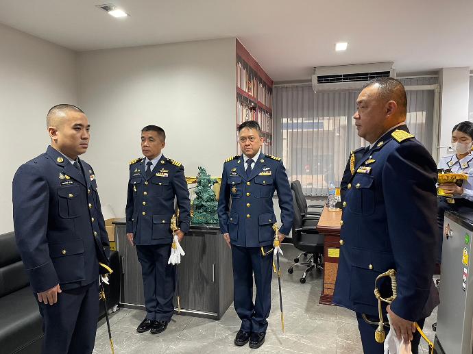 วันจันทร์ที่ 18 กันยายน พ.ศ.2566 0900 น. พล.อ.ต.สมนึก โพธิ์ศรี ผอ.ศซว.ทอ. เป็นประธานพิธีประดับยศ น.สัญญาบัตร ศซว.ทอ. จำนวน 1 คน โดยมีผู้บังคับบัญชา ศซว.ทอ.เข้าร่วมพิธี