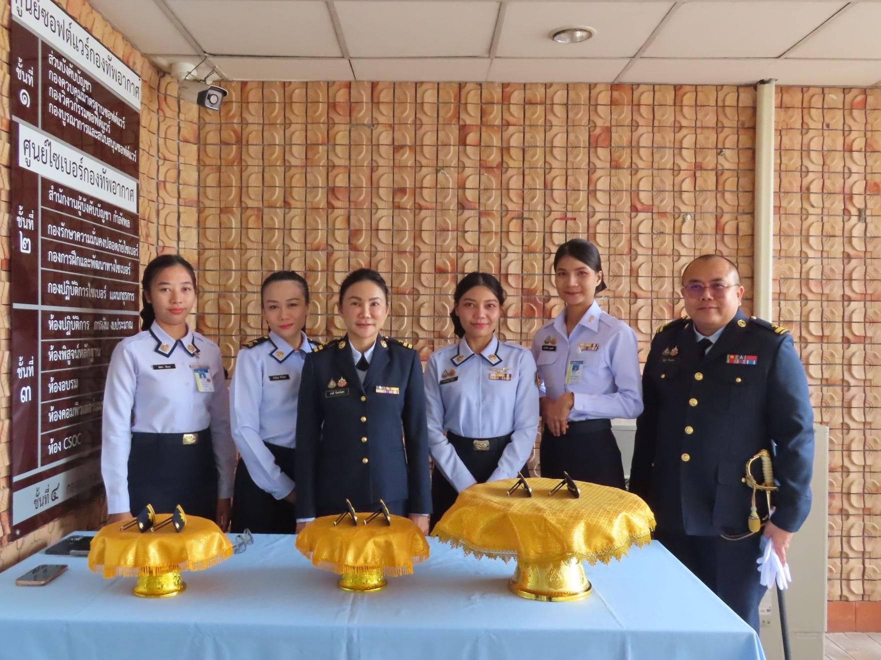 พล.อ.ต.ธีระวัฒน์ อินทรไพโรจน์ ผอ.ศซว.ทอ. เป็นประธานพิธีประดับเครื่องหมายยศข้าราชการ น.สัญญาบัตร ศูนย์ซอฟต์แวร์กองทัพอากาศ จำนวน 3 คน โดยมีผู้บังคับบัญชา ข้าราชการ ศซว.ทอ.เข้าร่วมพิธี ณ ลานหน้าอาคารศูนย์ซอฟต์แวร์กองทัพอากาศ