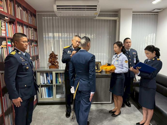 วันอังคารที่ 9 กันยายน พ.ศ.2568 เวลา 0900 น. พล.อ.ต.ธีระวัฒน์ อินทรไพโรจน์ ผอ.ศซว.ทอ. เป็นประธานพิธีประดับเครื่องหมายยศข้าราชการ น.สัญญาบัตร ศูนย์ซอฟต์แวร์กองทัพอากาศ จำนวน 1 คน โดยมีผู้บังคับบัญชา ข้าราชการ ศซว.ทอ.เข้าร่วมพิธี ณ ศูนย์ซอฟต์แวร์กองทัพอากาศ
