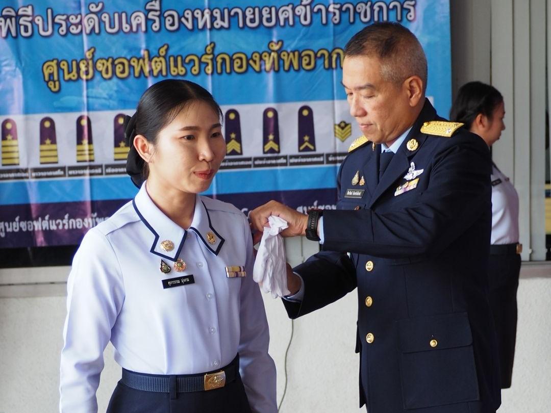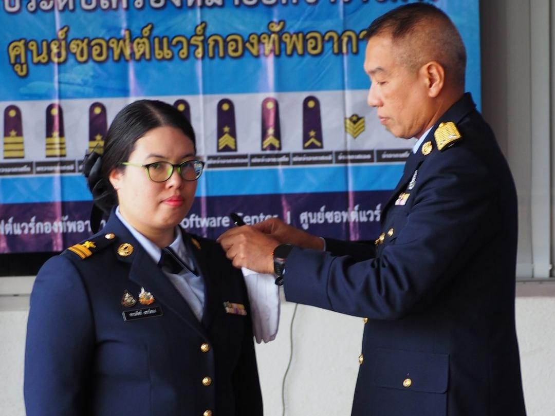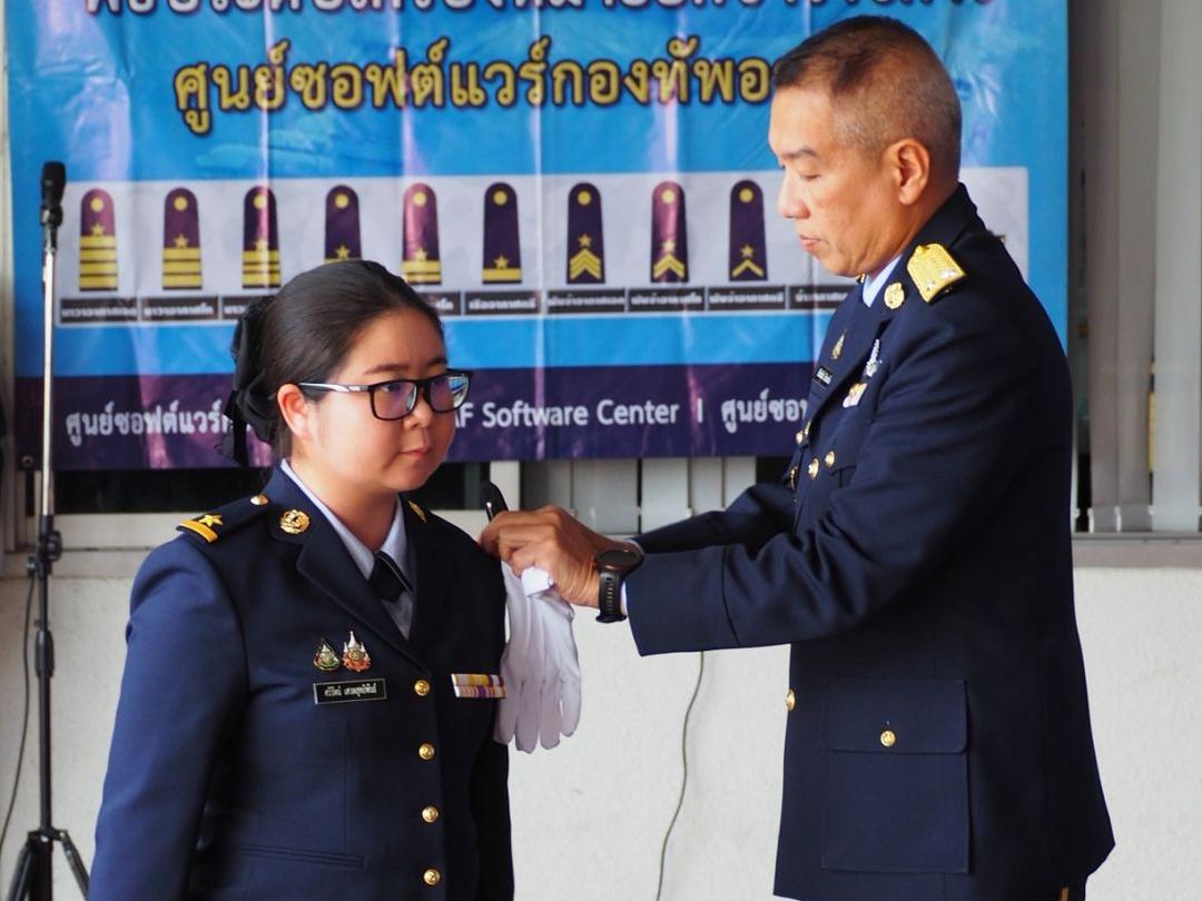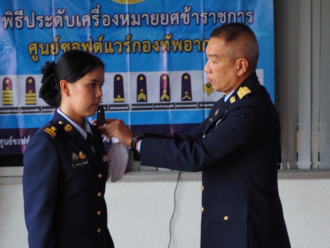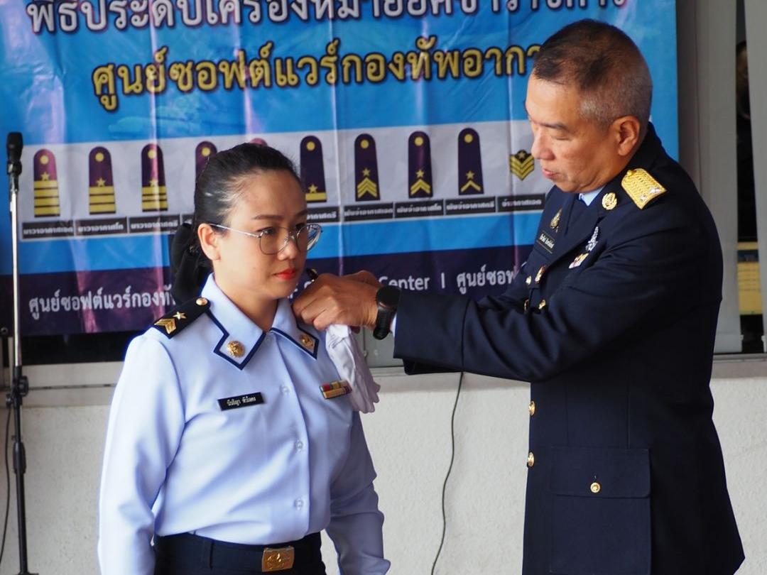 ผอ.ศซว.ทอ. เป็นประธานพิธีประดับเครื่องหมายยศข้าราชการ น.สัญญาบัตร และน.ประทวน ศูนย์ซอฟต์แวร์กองทัพอากาศ จำนวน 9 คน โดยมีผู้บังคับบัญชา ข้าราชการ ศซว.ทอ.เข้าร่วมพิธี ณ ลานหน้าอาคารศูนย์ซอฟต์แวร์กองทัพอากาศ