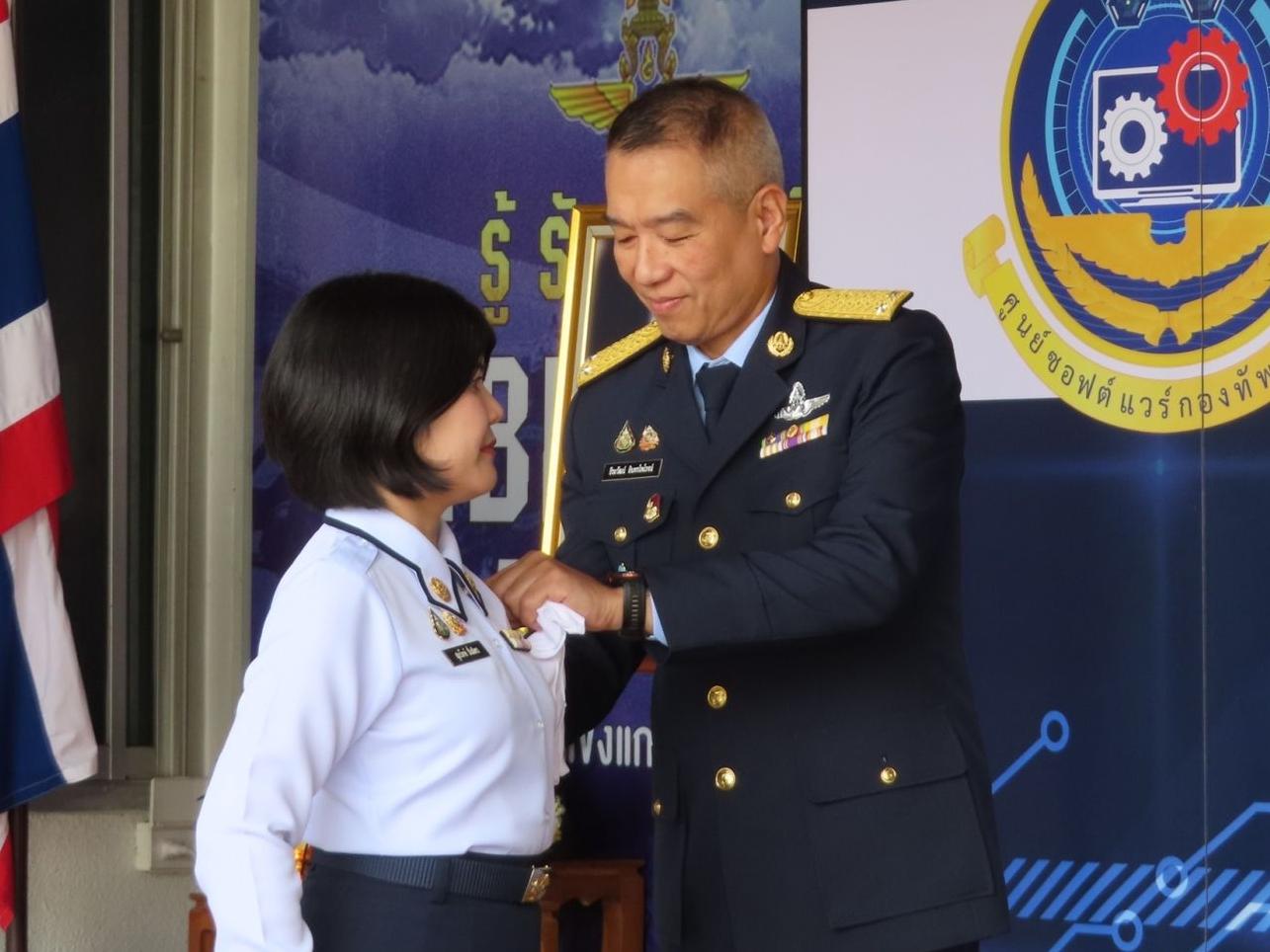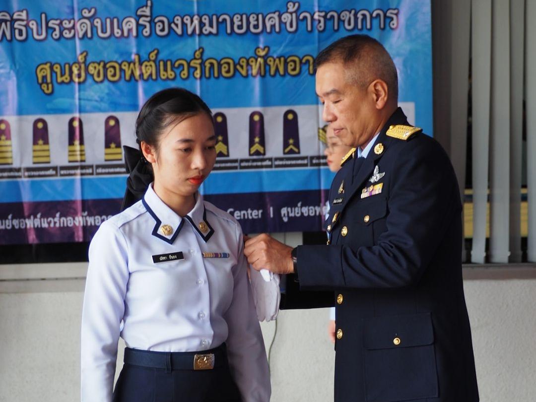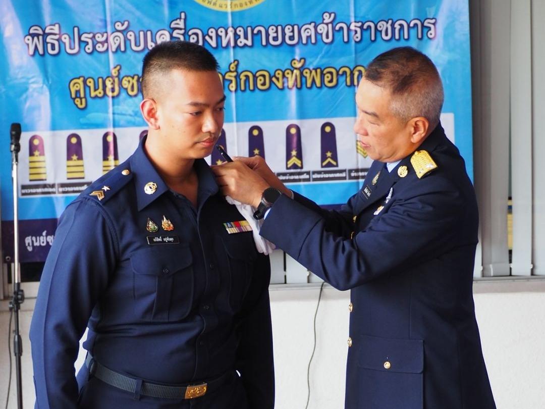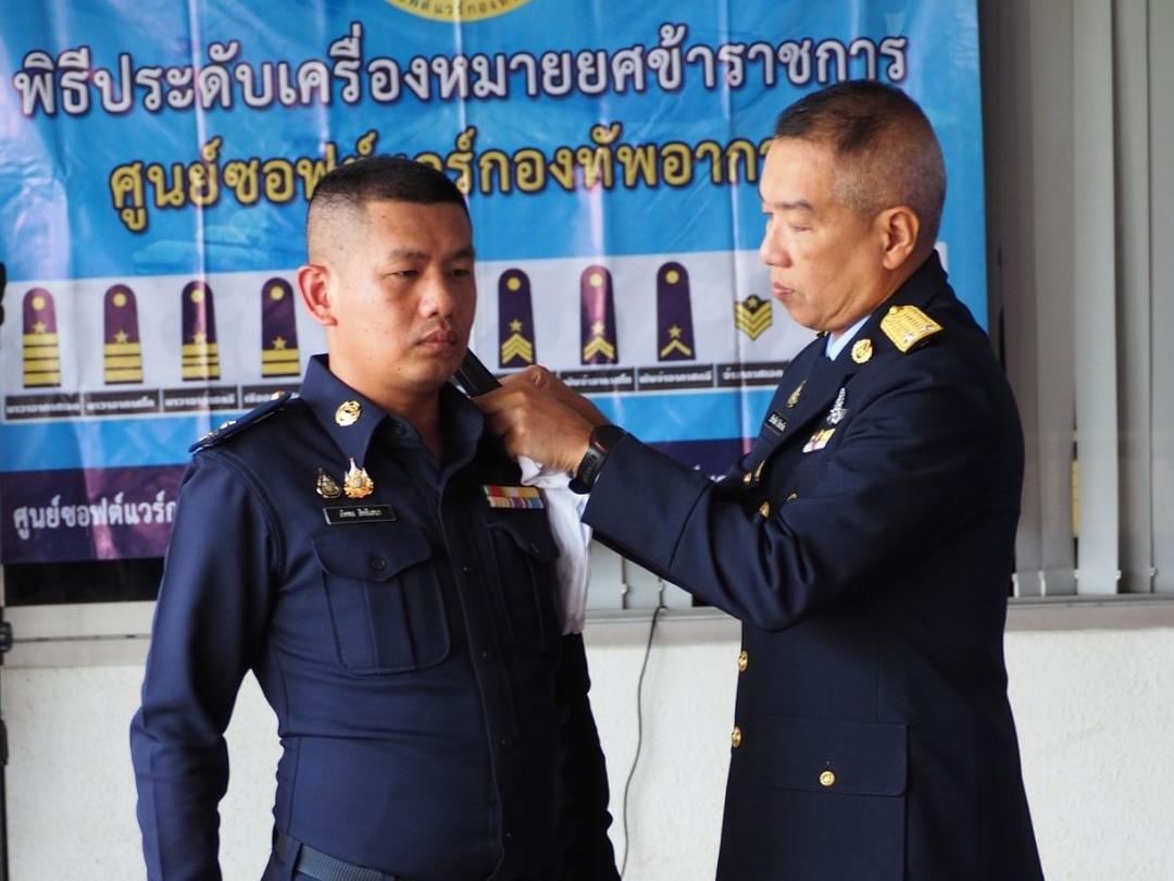 ผอ.ศซว.ทอ. เป็นประธานพิธีประดับเครื่องหมายยศข้าราชการ น.สัญญาบัตร และน.ประทวน ศูนย์ซอฟต์แวร์กองทัพอากาศ จำนวน 9 คน โดยมีผู้บังคับบัญชา ข้าราชการ ศซว.ทอ.เข้าร่วมพิธี ณ ลานหน้าอาคารศูนย์ซอฟต์แวร์กองทัพอากาศ
