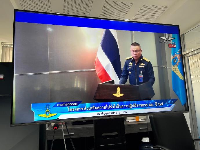 วันศุกร์ที่ 1 ธ.ค. 2566 เวลา 0900 น. น.อ.ธัชพงษ์ นิลอุบล รองผู้อำนวยการศูนย์ซอฟต์แวร์กองทัพอากาศ นำข้าราชการรับฟังการถ่ายทอดสดการประกาศนโยบาย No Gift Policy โดยมี ผบ.ทอ.เป็นประธาน ณ ห้องประชุม ศซว.ทอ.