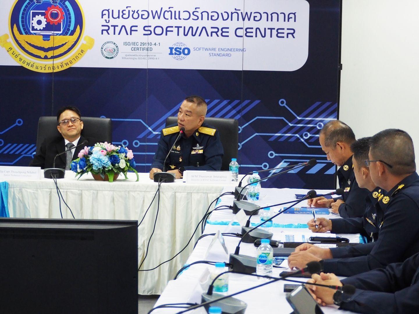 วันที่ 17 ธันวาคม 2567 พลอากาศตรี ธีระวัฒน์ อินทรไพโรจน์ ผู้อำนวยการศูนย์ซอฟต์แวร์กองทัพอากาศ ให้การต้อนรับ นาวาอากาศเอก ธัชพงษ์ นิลอุบล ผู้ทรงคุณวุฒิ และคณะภาคอุตสาหกรรมประกอบไปด้วยผู้บริหาร ทีมนรสีห์ (ประเทศไทย), Siemens (ประเทศไทย,สิงคโปร์), IBM (ประเทศไทย, สิงคโปร์), Obeo (ประเทศฝรั่งเศส), Astah (ประเทศญี่ปุ่น) ร่วมด้วยกับตัวแทนคณะวิศวกรรมศาสตร์พร้อมด้วยบุคลากรจากเครือข่ายมหาวิทยาลัยและภาคเอกชนในอุตสาหกรรมความมั่นคง การบินและอวกาศ เดินทางมาเยี่ยมชมศึกษาดูงานศูนย์ซอฟต์แวร์กองทัพอากาศ เพื่อพัฒนาความสัมพันธ์ระหว่างหน่วยงาน พร้อมทั้งสำรวจโอกาสในการแลกเปลี่ยนความรู้และการพัฒนาศักยภาพในอนาคต ณ ห้องประชุมศูนย์ไซเบอร์กองทัพอากาศ
